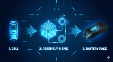 Pack/Battery: This is a system composed of many cells connected in series and parallel, equipped with protection and control electronics (BMS), wiring, a housing, and a thermal management system in the case of large applications such as ESS and automotive.