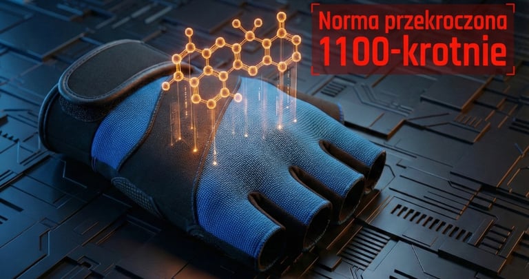 W gumie neoprenowej wspomnianych rękawiczek (partie 179034, 179035) wykryto wielopierścieniowe węglowodory aromatyczne (WWA) na poziomie 1,1 g/kg. Zgodnie z Rozporządzeniem REACH (Załącznik XVII, poz. 50), dla produktów mających kontakt ze skórą, limit wynosi zaledwie 1 mg/kg.
